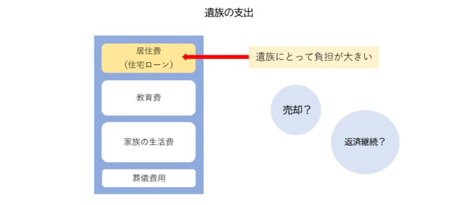 団体信用生命により住宅ローンの返済が終了しても、その他の生活費や教育費などは継続して負担となっていきます。また、ペアローンで残されたパートナーのローンの返済が継続する場合には負担は更に大きくなる可能性があります。
