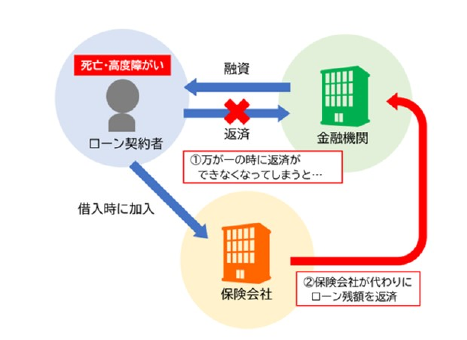 住宅ローン利用者に万が一のことがあったとき、生命保険会社がローン残高相当分の保険金を金融機関に支払うことで、遺族の住宅ローンの負担がなくなる保険です。