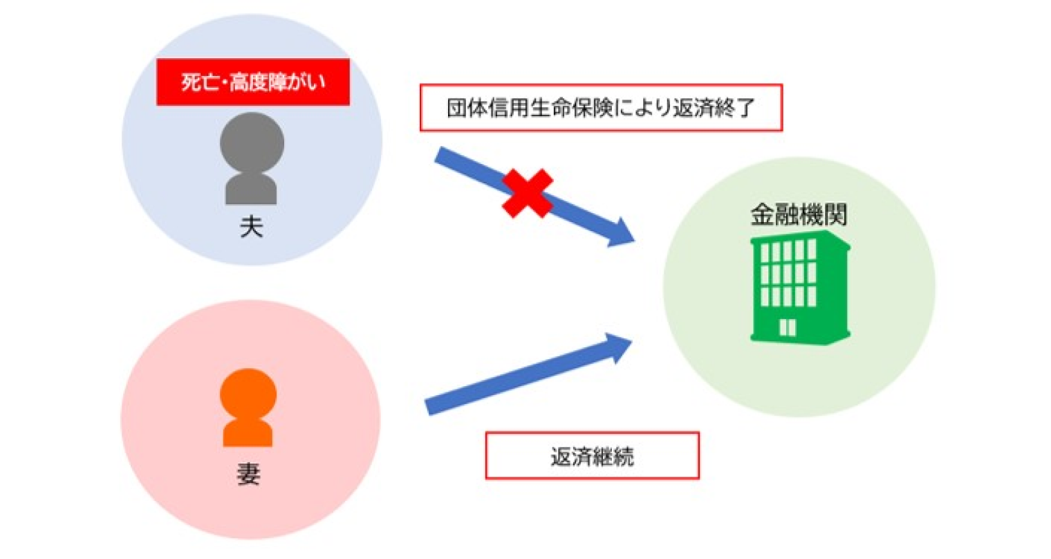 この場合、おふたりのどちらかに万一のことがあった場合、一般的な団体信用生命保険で保障されるのはその方の住宅ローンのみで、遺された方の住宅ローンの返済は継続します。